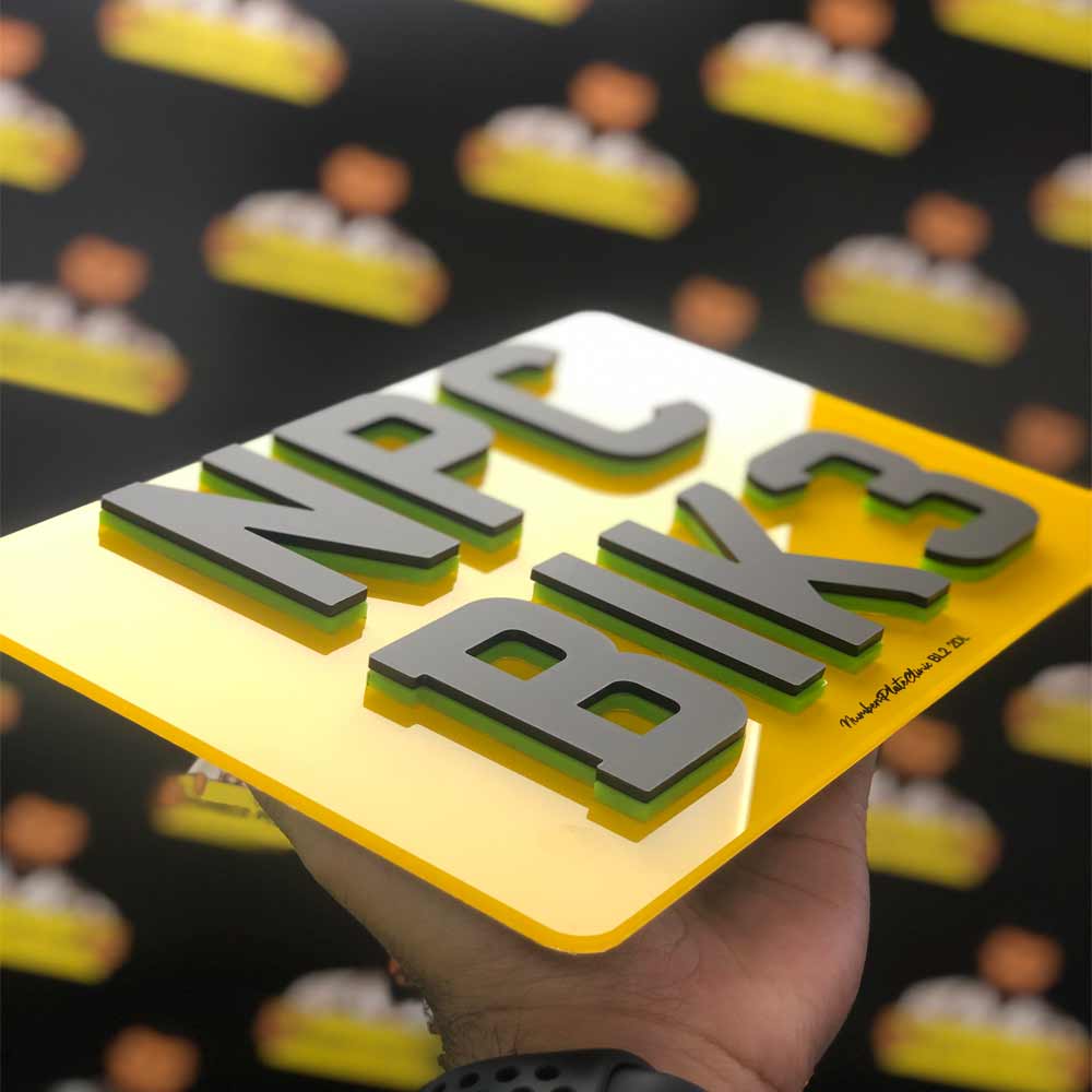 In summary, the 4D Green x 4D Number Plate is created by combining two layers: a 3mm layer of 4D Green acrylic and a 3mm layer of 4D Laser cut. This combination results in a total thickness of 6mm for the product.