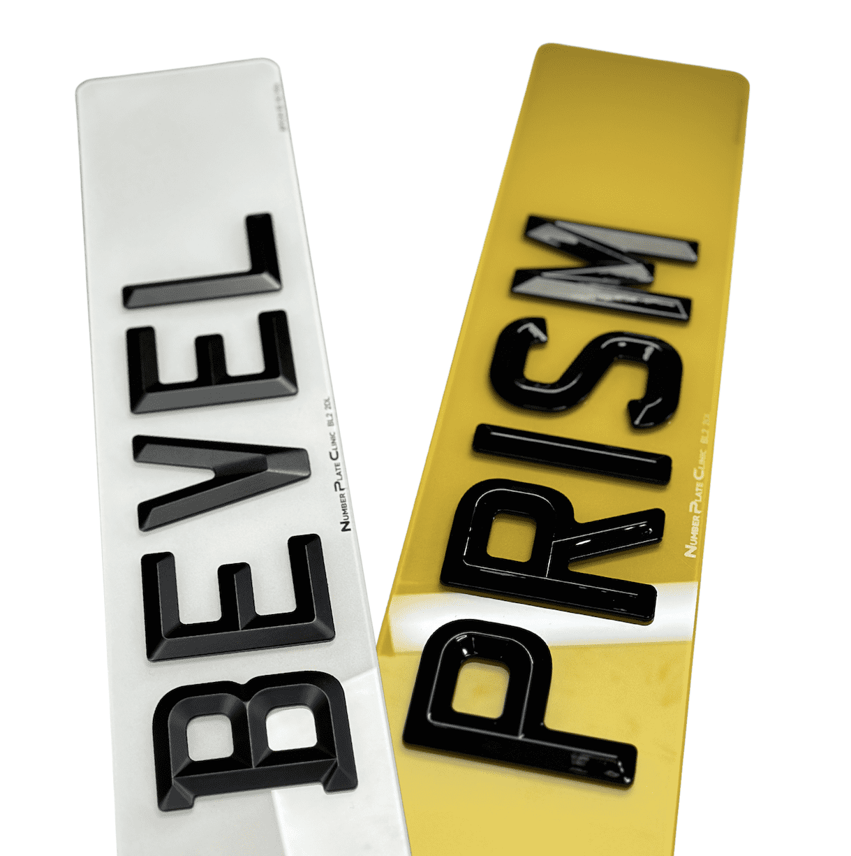Bevel Prism Number Plates are the perfect way to give your car a fresh, premium look with sharp raised black characters that add a distinctive, eye-catching touch. Fully road-legal and DVLA compliant, these plates boost your vehicle’s aesthetics while ensuring durability and longevity. Ideal for all types of vehicles, from sports cars to family cars, they provide a modern look without breaking the bank. The plates are made from solid acrylic, feature reflective materials for visibility, and meet all legal requirements for font, spacing, and reflectivity.