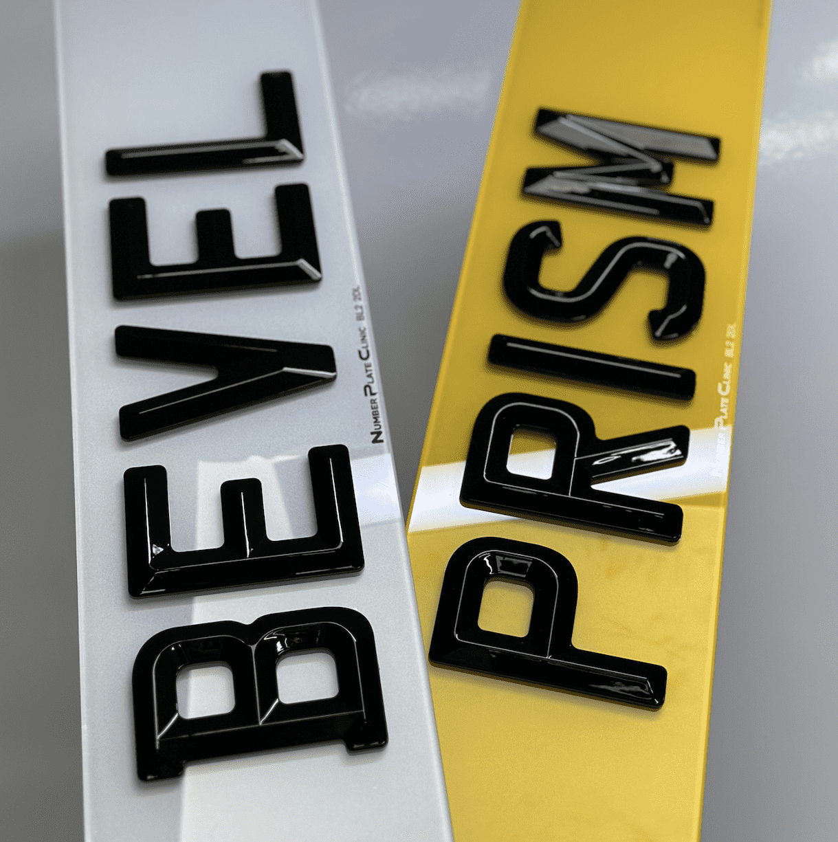 Bevel Prism Number Plates are the perfect way to give your car a fresh, premium look with sharp raised black characters that add a distinctive, eye-catching touch. Fully road-legal and DVLA compliant, these plates boost your vehicle’s aesthetics while ensuring durability and longevity. Ideal for all types of vehicles, from sports cars to family cars, they provide a modern look without breaking the bank. The plates are made from solid acrylic, feature reflective materials for visibility, and meet all legal requirements for font, spacing, and reflectivity.