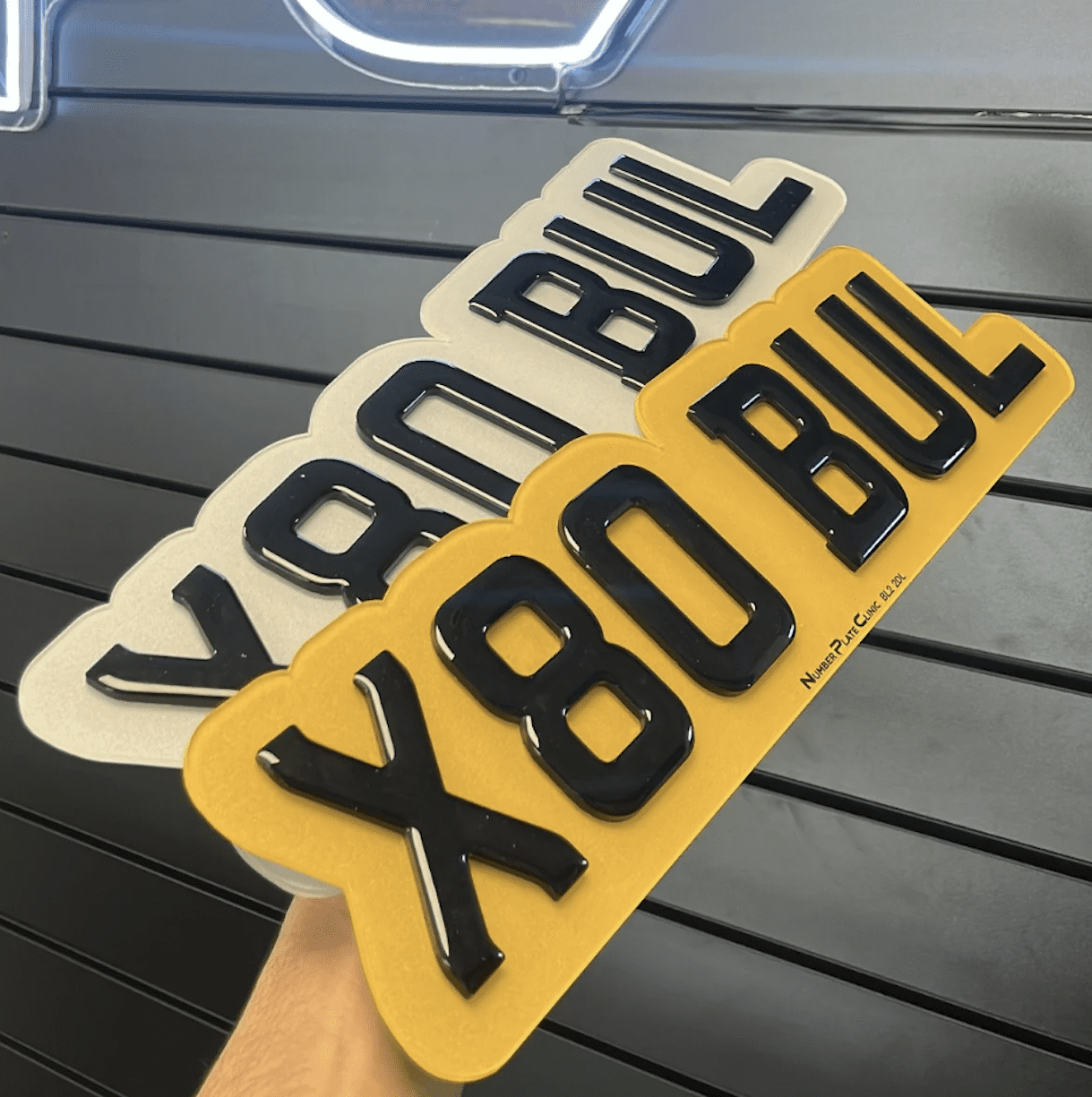 We can make any plate, any size, to your exact specifications, but this can only be done via WhatsApp 0777 444 55 16 or email:- info@numberplateclinic.co.uk