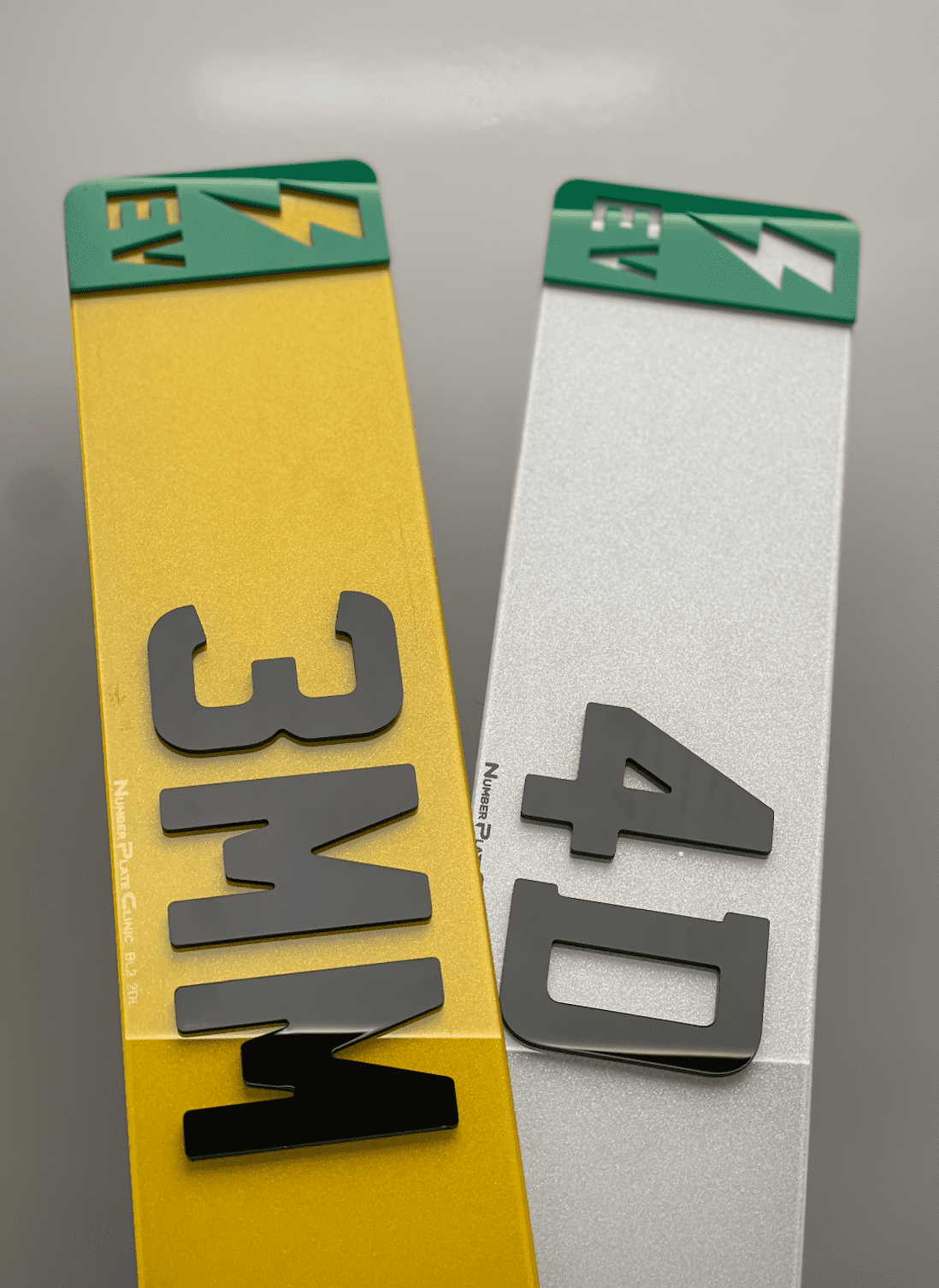 EV number plates are a growing number plate purchase here at NPC! With the rise in electrical vehicles being purchased we get asked about this number plate A LOT! And YES – we do cater to your needs below